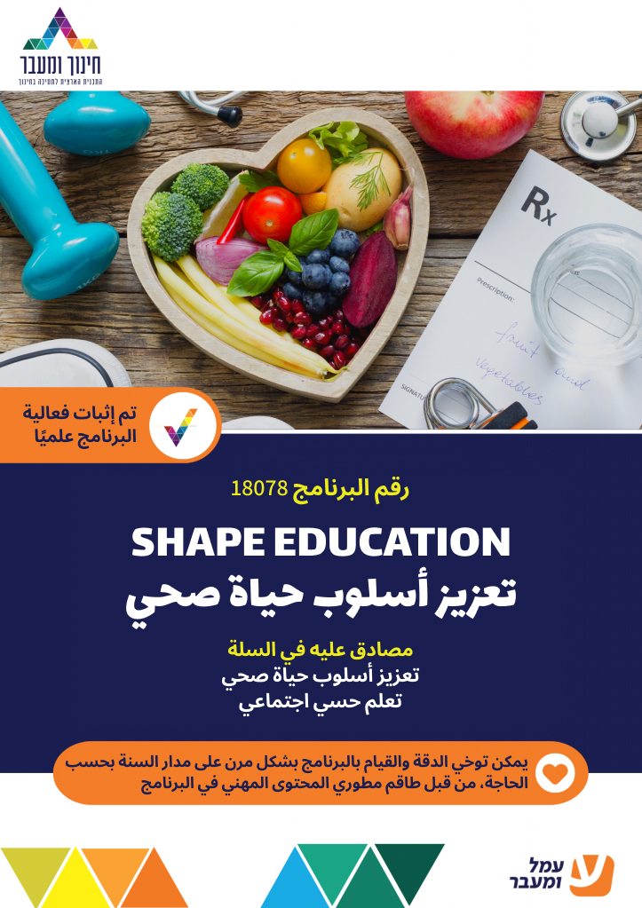 الغرض من برنامج SHAPE EDUCATION هو اكساب وعي عميق للدفع قدما بأسلوب حياة صحي وموازن وإكساب أدوات فعلية لتطبيق أسس الرفاه (WELL BEING) في حياتنا بكافة أبعاد وبيئات الحياة: جسدية، حسية، اجتماعية، ذهنية وغيرها.